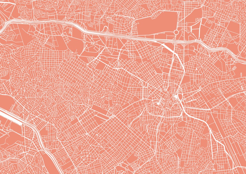 Creamy São Paulo Graphic Design São Paulo, Central Area and West Area. The outline of the blocks and the void of the street and rivers. Creamy colors.